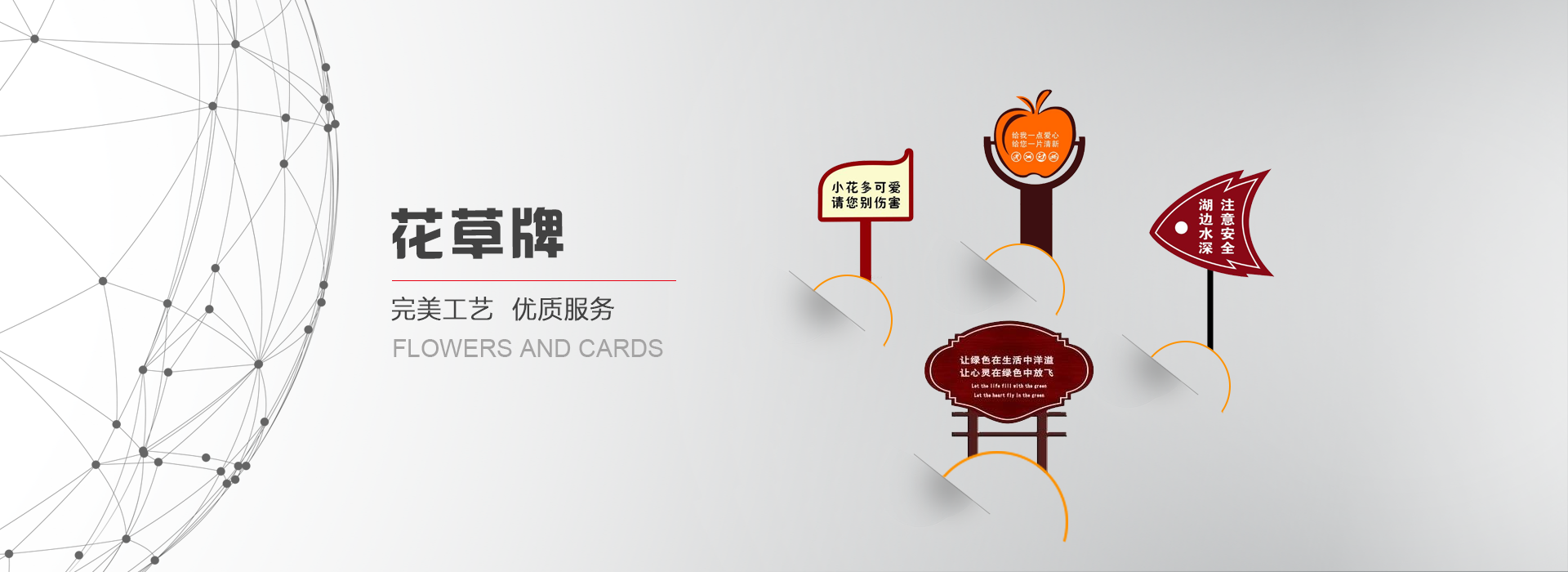 花草牌是指樹(shù)立在花草叢中用于提示愛(ài)護(hù)的標(biāo)識(shí)牌。又稱(chēng)牌或草牌,屬于溫馨提示的范疇。花草牌一般較矮,一般高度在40公分到1.2米之間,是雙面,厚度一般是4公左右。有鋼板的,有純實(shí)木的,或上述材質(zhì)相互結(jié),制作工藝為: