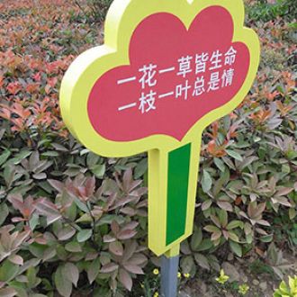 花草牌是指樹(shù)立在花草叢中用于提示愛(ài)護(hù)的標(biāo)識(shí)牌。又稱(chēng)牌或草牌,屬于溫馨提示的范疇。花草牌一般較矮,一般高度在40公分到1.2米之間,是雙面,厚度一般是4公左右。有鋼板的,有純實(shí)木的,或上述材質(zhì)相互結(jié),制作工藝為: